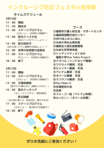 内容:3月14日(土)・15日(日)JR吉塚駅東口 吉塚緑地にて防災フェスタが開催されます。